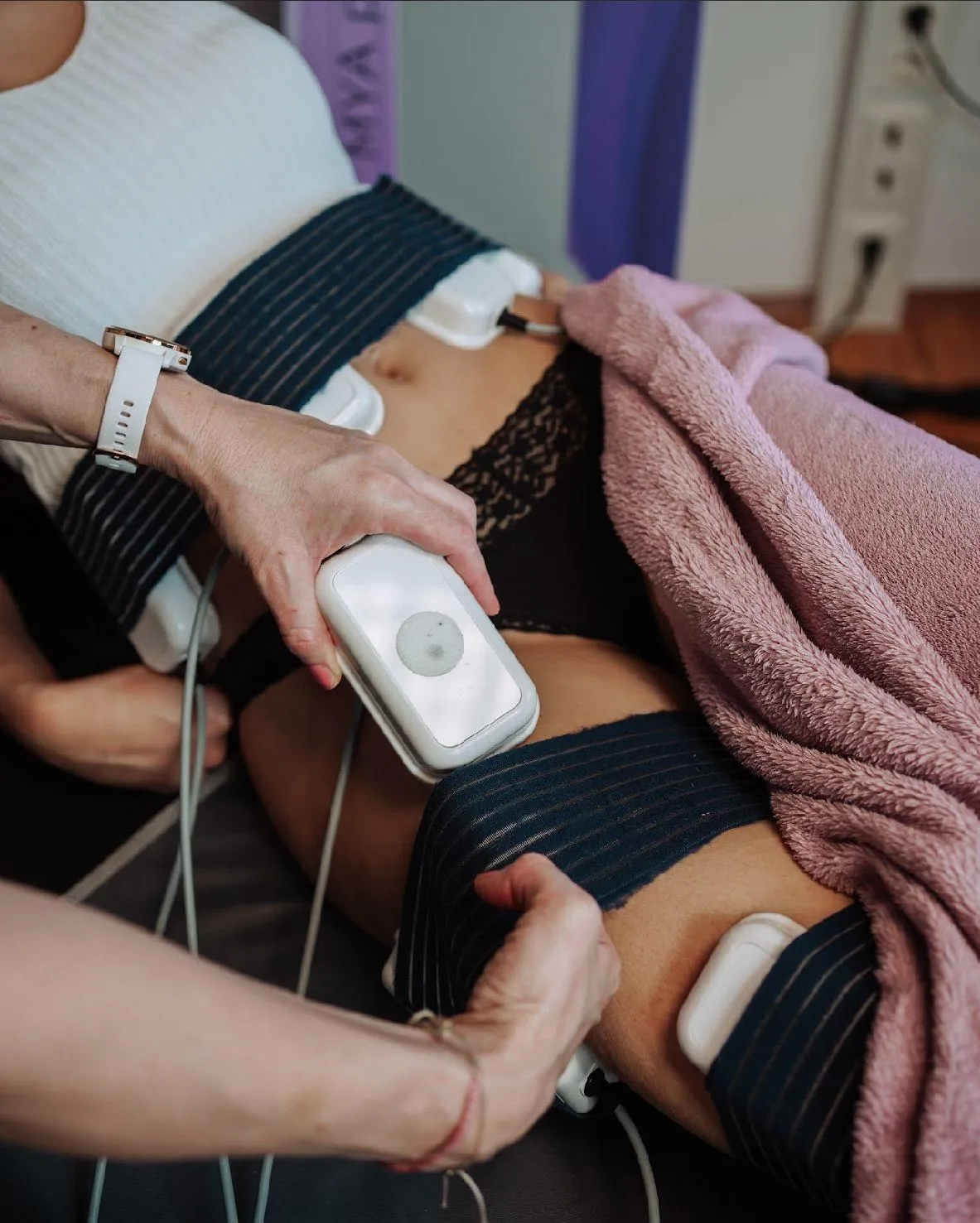 Die Behandlung nutzt angenehme Impulse, die Muskeln und Gewebe stimulieren, während du entspannt liegst.
